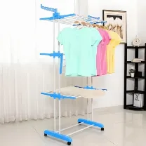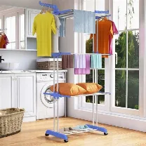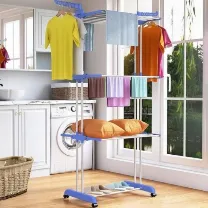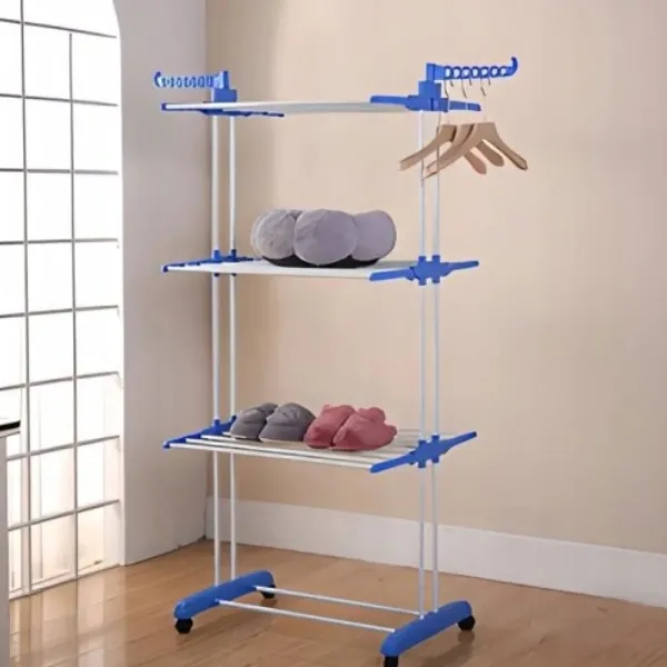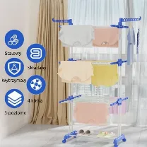 3 poziomy, 6 ramion i dodatkowe uchwyty na wieszaki — tu naprawdę zmieścisz wszystko. Ubrania, ręczniki, pościel i nawet buty – każde pranie ma swoje miejsce i schnie szybciej.