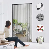 Moskitiera stanowi skuteczną ochronę pomieszczeń przed insektami. Wyposażona w magnesy, umożliwiające łatwe otwieranie i zamykanie. Odpowiednia do drzwi pojedynczych, przesuwnych, balkonowych, drzwi kamperów, itp. Umożliwia zwierzętom swobodne wchodzenie i wychodzenie.