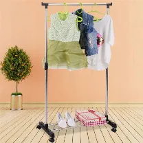Lekki, a jednocześnie stabilny wieszak na ubrania z regulowaną wysokością. Doskonały do firmy, sklepu, biura oraz domu. Bardzo prosty w montażu. Wykonany z metalu - rury o przekroju 20mm. Poprzeczka chromowana 25 mm. Skręcany w systemie złącz. Wyposażony w regulację wysokości, która pozwala eksponować na nim dowolną odzież.