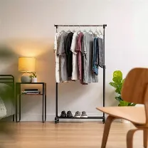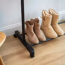 Na dole znajduje się półka wytrzymała na buty. Można na niej odłożyć buty i przemieszczać je razem z ubraniem.